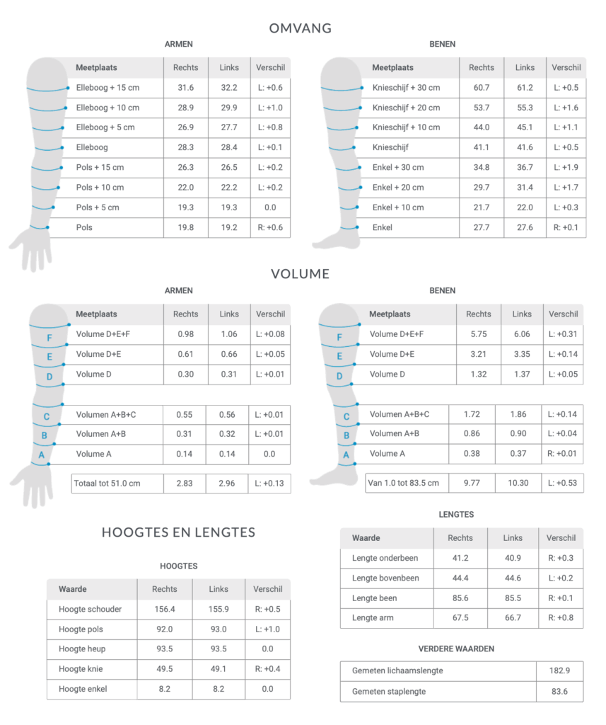 Lichaamsverhoudingen, omvang en volume→ geeft inzicht in spiermassa, vetverdeling en proporties.