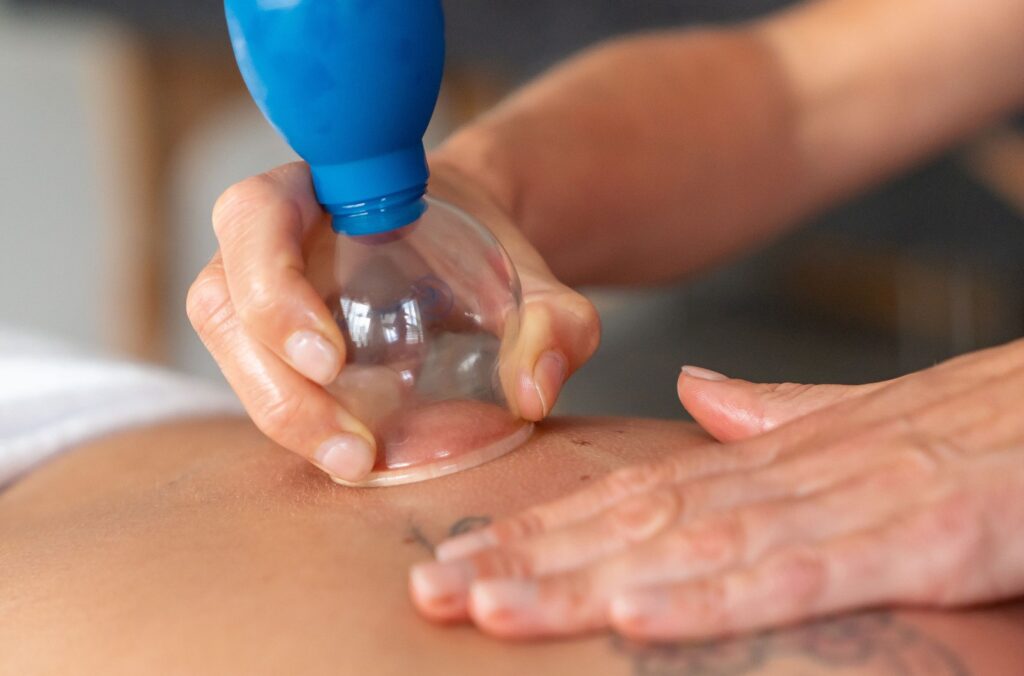 Cupping is een manuele therapievorm waarbij speciale vacuümcups op de huid worden geplaatst.